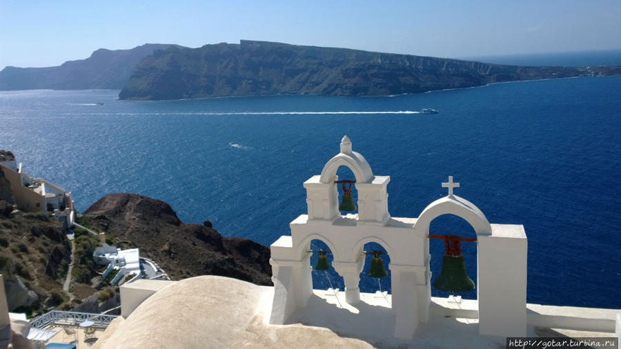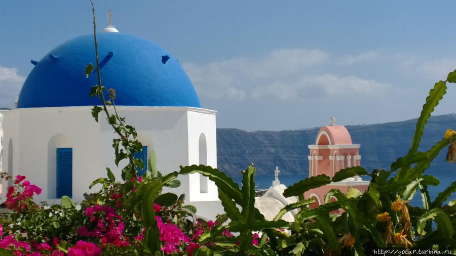 Здесь принято справлять свадьбы, или отправляться в свадебное путешествие, или предлагать руку и сердце любимой женщине…. Здесь необыкновенная атмосфера…. Ослепительная белизна городков, утопающих в морской синеве, расположенных вдоль самого края кальдеры поглощает несметное количество туристов, растворяя их в пространстве и времени.