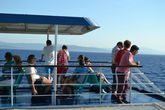 На паром возвращаются довольные увиденным морские путешественники уже не так дружно. Кто-то использует отведенное для пребывания на суше время до последней минутки, а уставшие от вояжа по и вдоль острова спешат на паром, чтобы занять лучшие места. Солнышко разыгралось и лучше спрятаться по навесами, чем сидеть под палящими лучами светила.