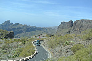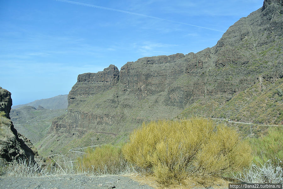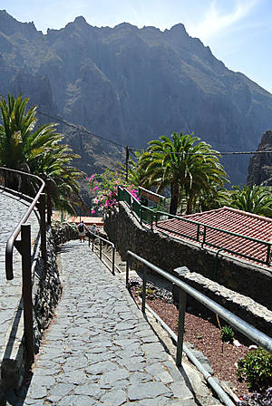 К затерянной деревушке Маска по дну ущелья ведет так называемая "дорога страха": узкое шоссе, на котором две встречные машины могут разминуться только в специальных кармашках. На экскурсии сюда возят только в мини-бусиках: большой автобус здесь не пройдет. Кроме того, "дорога страха" очень извилиста, однако совершенно безопасна, идеально построена и огорожена. Не так давно у жителей Маски не было и такой дороги, и добраться до цивилизации они могли только пешком. И вот однажды старейшина Маски, некто Жозе Перес Гонсалес, пребываючи уже в довольно почтенном возрасте, пешком отправился в столицу острова к министру с требованием построить обещанную дорогу. Бедняжка-министр даже не знал о существовании на острове такого поселения, а узнав, что численность его населения составляет порядка 120 человек — попросту отмахнулся. Однако канарцы — не те люди, которые просто так отступают от намеченной цели: Гонсалес поселился под дверью министра и не ушел до тех пор, пока строительство дороги не было начато. Сегодня этому человеку в родном городке водружен бюст на центральной площади, а мы благодаря этому человеку можем насладиться красотами Маски и Лос Гигантес.