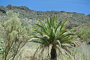 Но вот мы в Маске. Название деревушки по легенде происходит от имени девушки-гуанчи, которая спрыгнула со скалы, лишь бы не выходить замуж за испанца. А еще это затерянное ущелье было пристанищем пиратов. Из бухты было очень удобно выслеживать богатые суда, идущие на Ла Гомеру, и внезапно их атаковать. А еще здесь можно было передохнуть после долгих баталий, искупаться в лазурных водах океана и... надежно припрятать сокровища в одной из пещер. По легенде, когда испанцы таки достроили дорогу до Маски, они увидели, что жители крошечной деревушки весьма неплохо себе поживают и отнюдь не бедствуют. На резонный вопрос "Откуда деньги?" простодушные жители рассказали о мальчике-пастухе, который нашел в одной из пещер сундук с золотыми монетами. Но не зажал, как сделал бы любой нормальный русский человек, а разделил сокровища между всеми жителями деревни. С тех пор и по сей день люди авантюрного склада характера продолжают поиски сокровищ в ущелье Маска. Говорят, что порой находят...