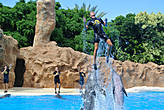 Наиболее сильное впечатление на меня лично произвело шоу косаток! Это шоу можно увидеть всего в нескольких уголках нашей планеты, оно является невероятно редким и зрелищным. Что вытворяют эти многотонные киты-убийцы — это непременно стоит видеть! Здесь вам и танцы, и пение, и свист, и трюки, и кокетство, и шалости! Отдельным видом программы, вызывающим наибольший восторг у зрителей, является обливание последних водой. После чего, хотите верьте, хотите нет, хитрюги-косатки высовывают из воды свои наглые мордочки и вдоволь потешаются над мокрыми с ног до головы человечками. Восторгу нашему не было предела! Не было слов! Если верить тому, что смех продлевает жизнь, косатки наплюхали нам своими хвостиками лет по 20 как минимум))) А ощущение счастья до сих пор неизменно посещает меня от одного только воспоминания об их черно-белых тушках!