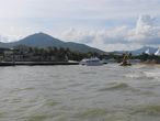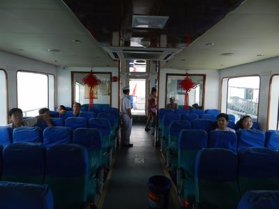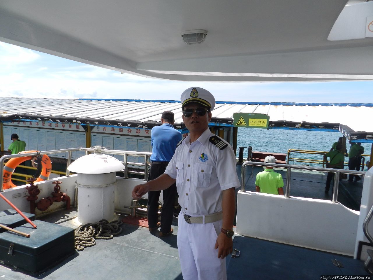 Wanbo Hotel - семь раз подумай, один раз забронируй волна совсем маленькая. Повторюсь, море вблизи Учжичжоу чистое. Вот только для купания отведён уж больно маленький лягушатник. Когда сюда приедет большое количество китайцев, они будут плескаться в море друг у друга на головах. Освежившись, направляюсь на пристань. Прощай Учжичжоу! Причал пока пуст, но к нему уже подошёл катер. Пассажиры выходят. Мы заходим. Фотографирую капитана, Усаживаюсь в пустом салоне в одно из кресел. А кому-то всё же не мешало бы