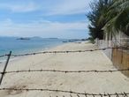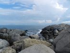 Впереди появляется мост, соединяющий Учжичжоу с маленьким островом. Проезжаем по нему, и через пару минут водитель высаживает нас на отведённой для этого площадке. Мои китайские спутники поочерёдно фотографируются возле камня с иероглифами. Где-то вдалеке через пролив виднеется Хайнань. Покупаю холодный кокос за 20 юаней (на материке на обычном базаре он стоит 6-8). Утолив жажду, отправляюсь на изучение островка. Рядом из ниоткуда вдруг материализуются китайские солдаты. Прошу одного из них, сделать совместное селфи. Удивительно, но он соглашается (до этого военные в фотосъёмке мне отказывали). Море, монотонно облизывая волной берег, подзывает к себе. Хочется подойти и потрогать волну. Однако спускаться к воде разрешается только в определённых местах. Отведены также и места для фотосъёмок. За порядком следят солдаты.