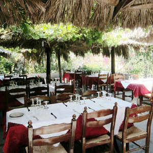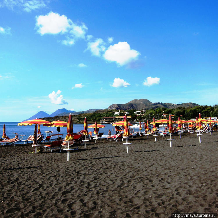 Пока я осматривала камешки и сувениры (купила нитку местных кораллов, камней я уже набрала на Этне и Липари), Марик выбрал пиццерию. Чудную, с соломенной крышей, утопающую в зелени. Там было настолько уютно и вкусно, что уходить не хотелось. Хотелось подняться на вулкан или Вулканело, но это 1.5-2 часа, а их у нас уже не было. Кроме того, нужна была подходящая обувь и платок на лицо, чтоб не надышаться серой. Мы экипировались недостаточно хорошо. Зато ничто не мешает нам проплыть по бухтам, заливам и пещерам.