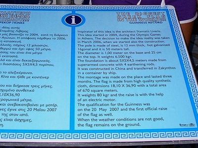 Рядом с маяком установлен флагшток, на который поднимают самый большой в мире греческий флаг. Если позволит погода. Мне не повезло – флаг был спущен и привязан к основанию флагштока. На памятной плите выбито поражающее мудростью изречение. Да, с этим не поспоришь! Судя по дате, эта надпись связана с успешным поднятием флага и внесением его в книгу рекордов.