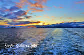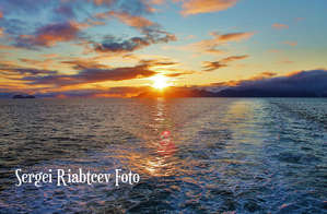 Закатное солнце над островами. Добавьте сюда ещё море (Норвежское), корабль, с которого все эти наблюдения происходили, облака (в меру, чтобы не закрывали собой светило), и, думаю, картина будет почти готова.