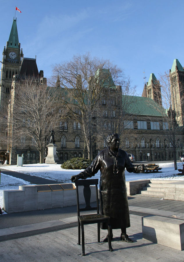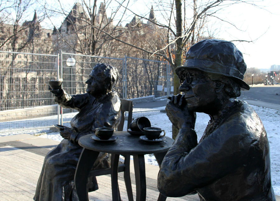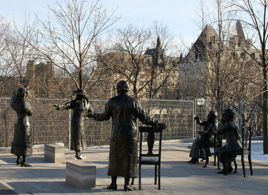 О нем я тоже заранее читал в интернете, но исключил его из мест обязательных для посещения. Просто вначале я подумал, что памятник посвящен хоккеистам, тем более на сайте не было фото. На самом деле расположенный на Парламентском Холме бронзовый памятник посвящен активисткам феминистского движения в 1920-х годах.