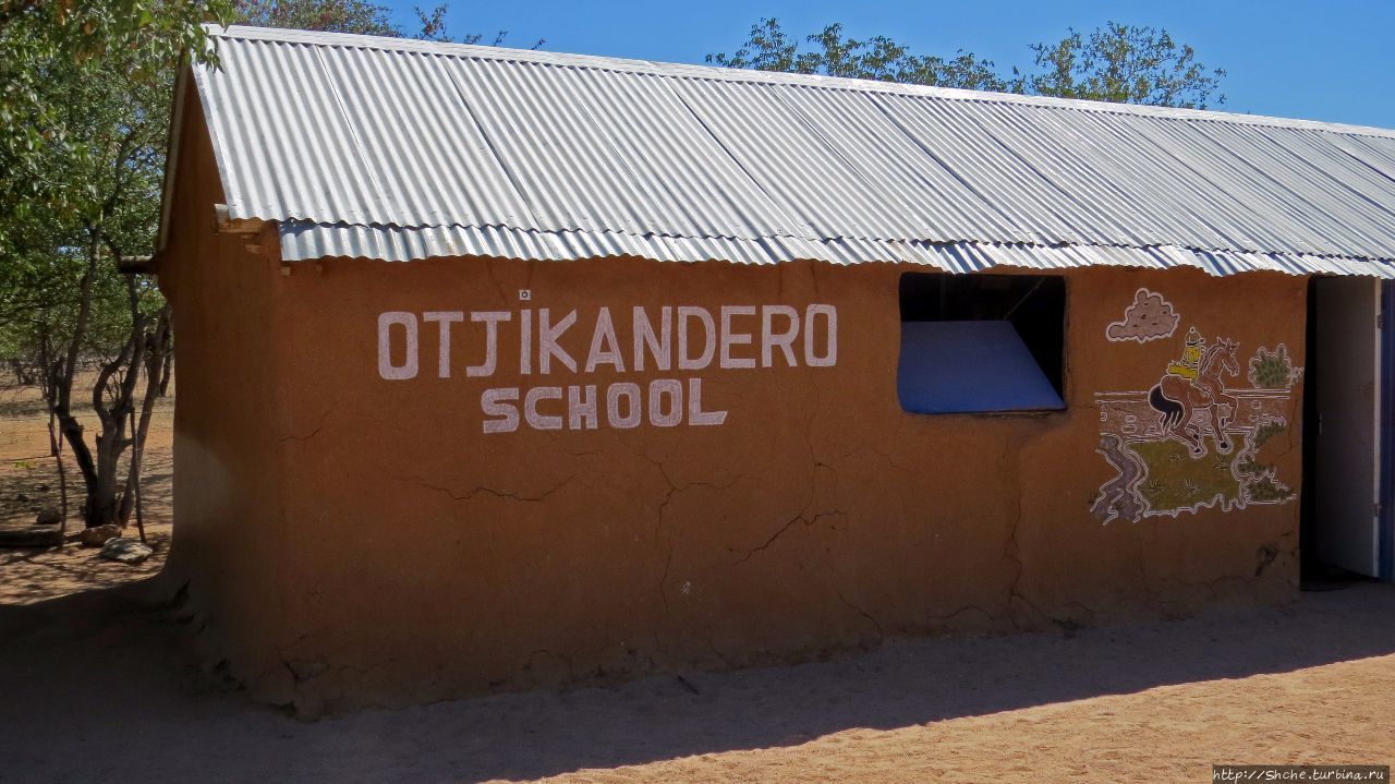 А дело вот в чем. В 1999 году один исследователь традиций племени химба Жако Бургер (Jaco Burger) познакомился с девушкой по имени Мукаджо (Mukajo), Она была королевских кровей, одной из последних потомков королевы Овахимба, пришедшей сюда из Анголы. Она не могла иметь своих детей, но отчаянно этого хотела. По законам химба женщина не замужем не могла иметь детей, тогда Жако Бургер сочетался с Мукаджо традиционным для племени браком (который благословили вожди Овахимба). Это дало возможность усыновлять сирот. Позже они основали деревню (которая получила приставку "сиротская"), которая работает на принципе интерната. Здесь и сейчас, кроме детей, родившихся уже в самой деревне, принимают детей-сирот. Им дают образование и стараются дать дорогу в цивилизованную жизнь Намибии, но те, кто предпочитают традиционную жизнь племени, имет возможность оставаться. Так же для ухода за детьми сюда приходят женщины-добровольцы, которые играют роль воспитательниц...