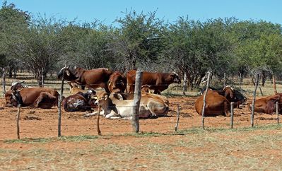 Химба — племя скотоводов. И, хотя эта деревня условно искусственная, свое стадо скота она имеет...