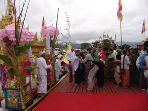 Это продолжение альбома фотографий, которые я сделал в первый день грандиозного фестиваля Фаунг До У на озере Инле. Суть праздника в том, что статуи четырех из пяти будд, которые хранятся в храме, таскают на лодках по всем местам вокруг озера, видимо чтобы благословить местных жителей. Это случается каждый год в сентбяре и мне удачно повезло со временем моего визита на озеро. В этом альбоме фотографии паломников, их лодок и вынос божеств в специальные лодки.