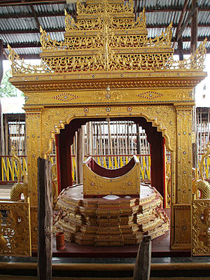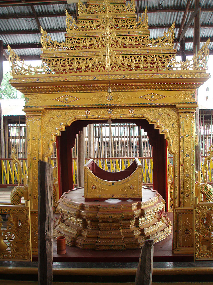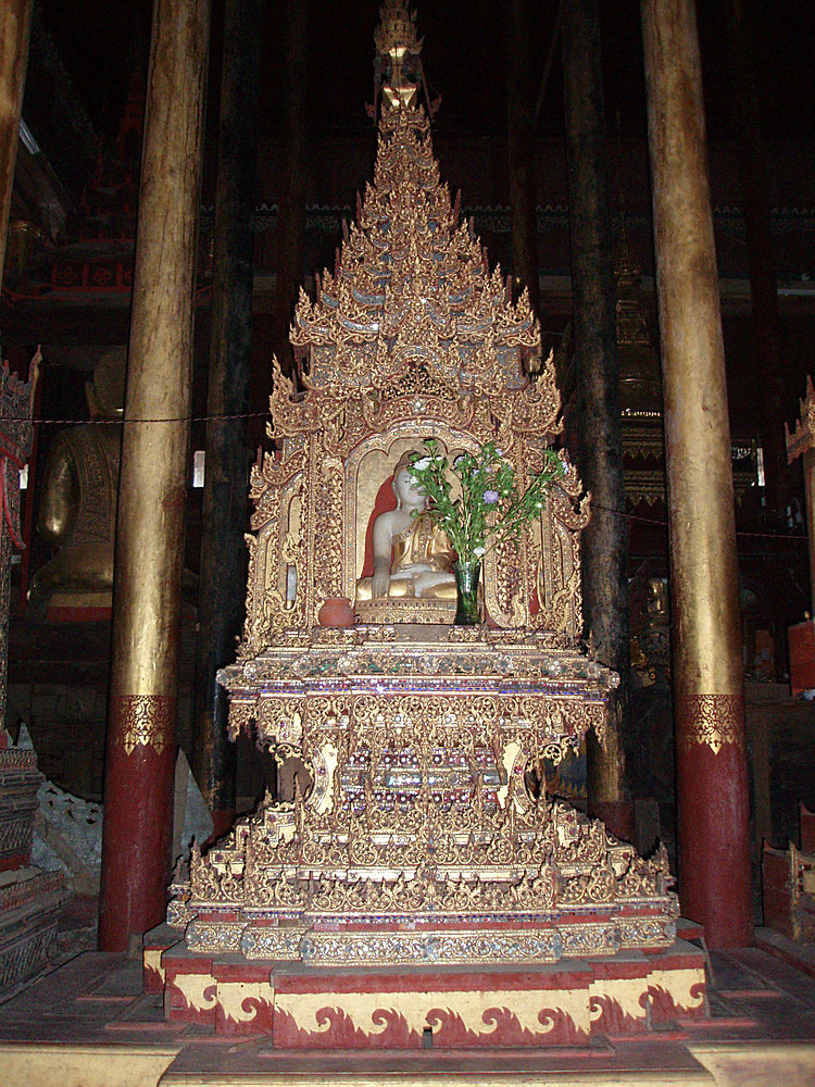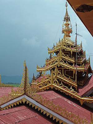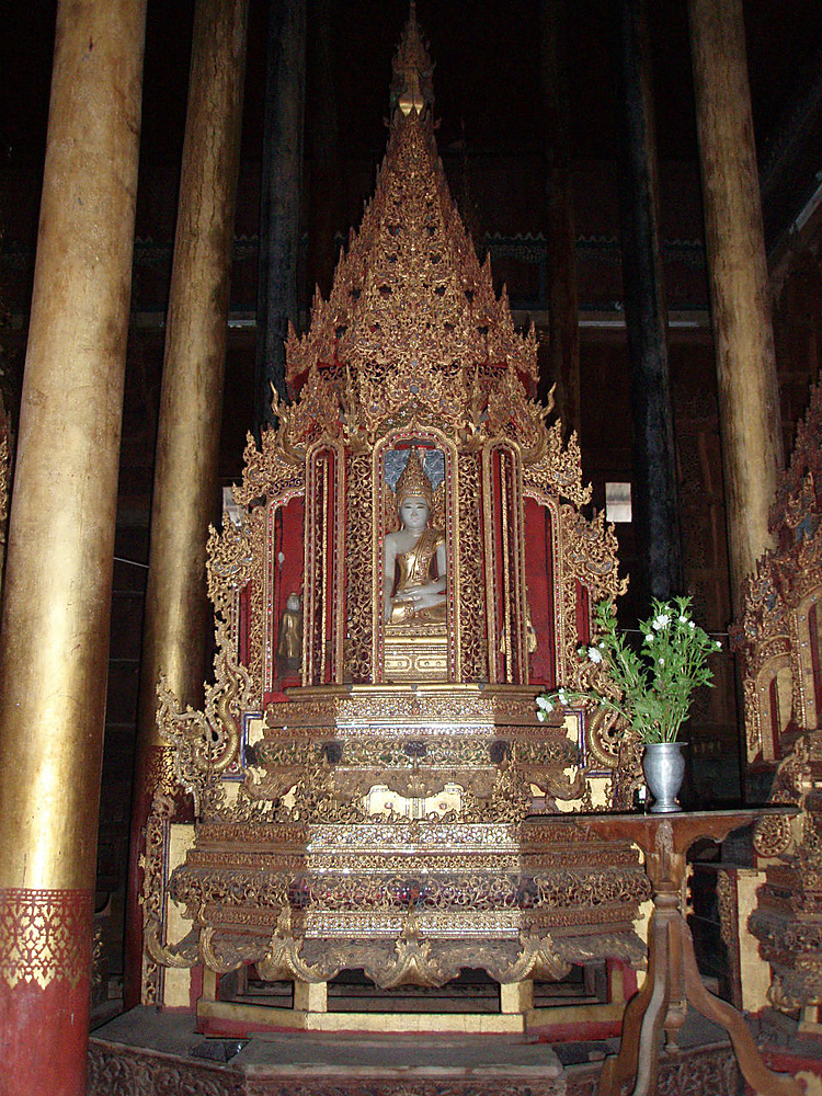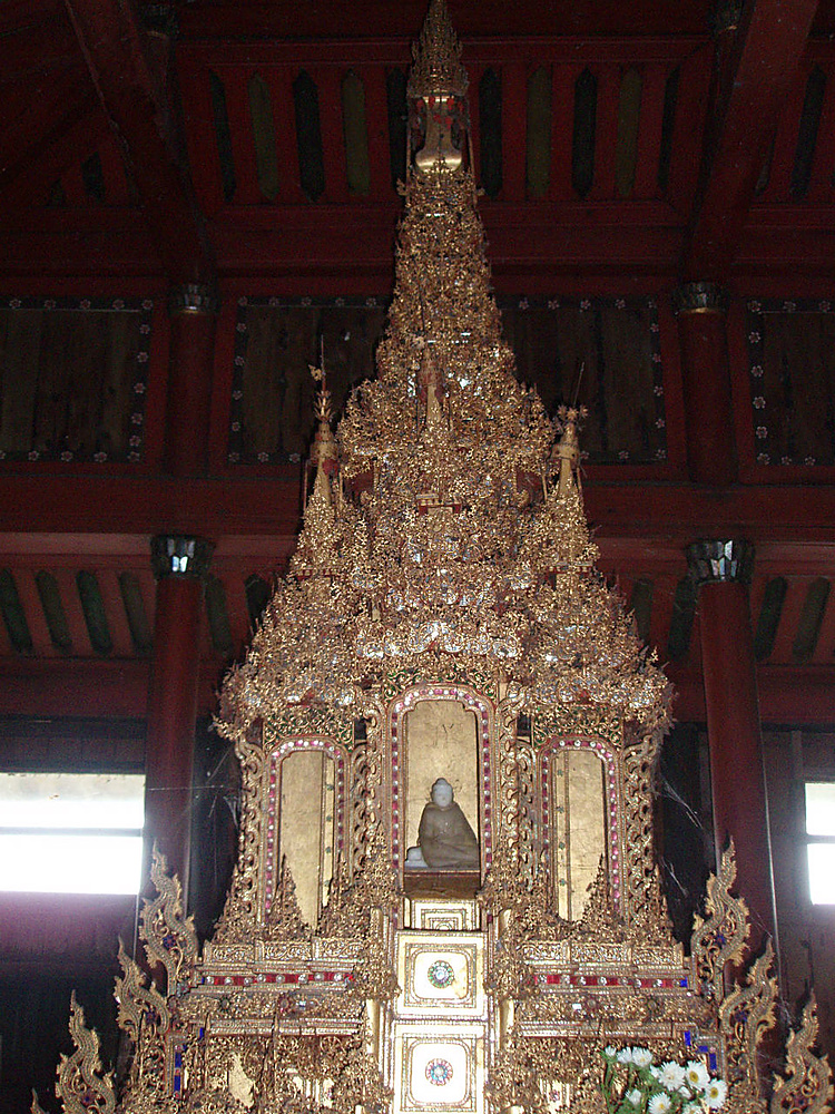 Золотая резьба украшает ярусы пагоды, на вершине сияет золотом хти.