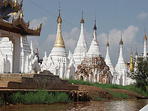 По берегам, острыми шпилями ступ, обозначено большое количество буддийских монастырей,