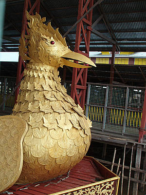 Украшены лодки большими золотыми статуями чаек — одним из символов Инле.