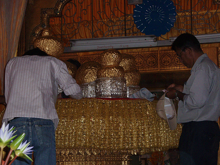 статуи пяти Будд, от количества нанесенного на них золота, трудно узнаваемы, трудно