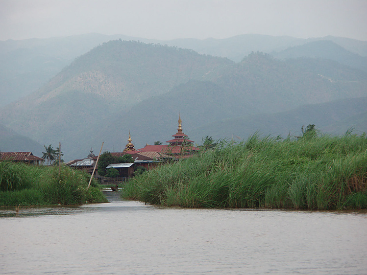 Вот виден главный храм на озере Инле — храм Пяти Будд!