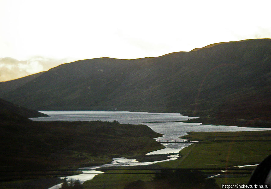 Назад мы ехали вдоль озера по другому берегу, но стекла автобуса настойчиво предлагали спрятать камеру и отдыхать. Это северная оконечность озера у города Ивернесс