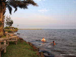 Озеро Набугабо находится примерно в 18 километрах от Масаки, оно чистое, а главное - без шистомотоза, что особенно устраивало Антона, который всегда очень любит устраивать всяческие заплывы и здесь планировал их устраивать тоже.