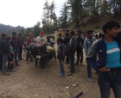 Так и начался наш выезд с Рары. Ничто не могло нас остановить, на спущенном колесе мы волоклись вниз по одному из самых опасных участков пути. Возмутительной стала встреча с тремя непальскими мальчуганами. За то, что мы проехали, не остановившись на их призывы, они стали дергать наш багаж, пытаясь выхватить хоть что-нибудь. Все было привязано, но одному из них удалось выдернуть картинку с флагом России. Мимо проехало двое непальцев на байке, это их отпугнуло. Пацанва убежала, оставив нас с открытыми ртами. Мало сказать, что мы были ошарашены. Мы еще долго не могли отойти от этого случая, так и не поняли ничего…