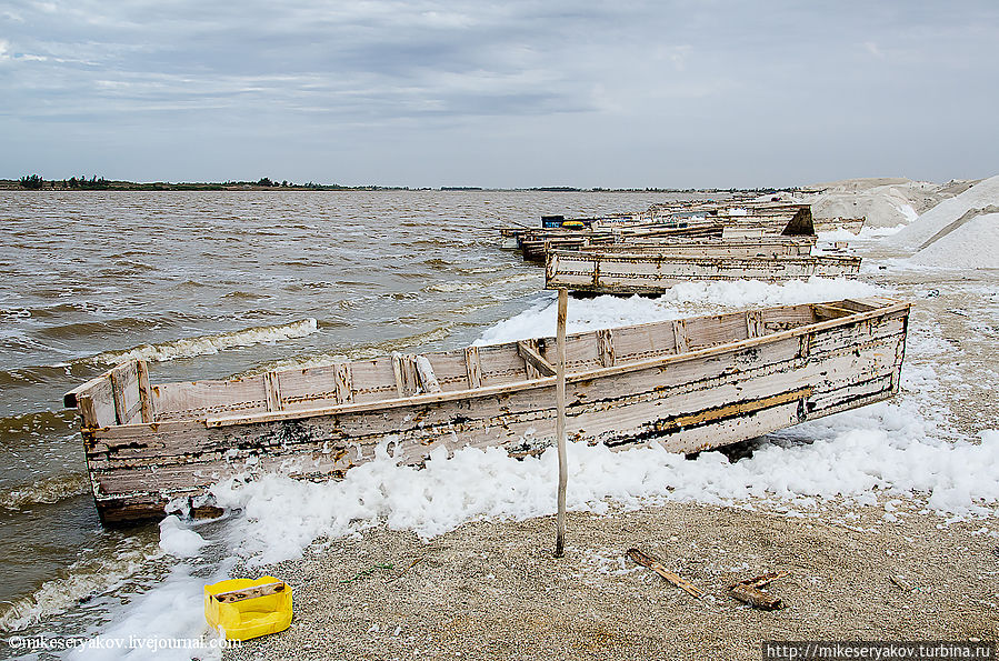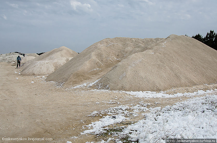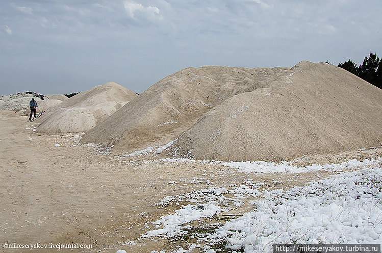 Вывозят соль вот на таких огромных грузовиках «Рено» 70-х годов 20 века.