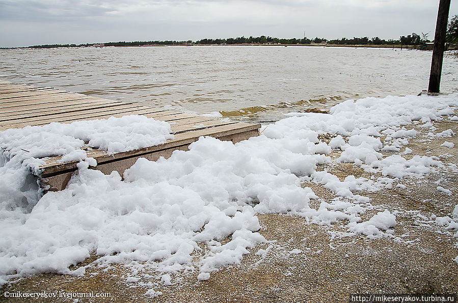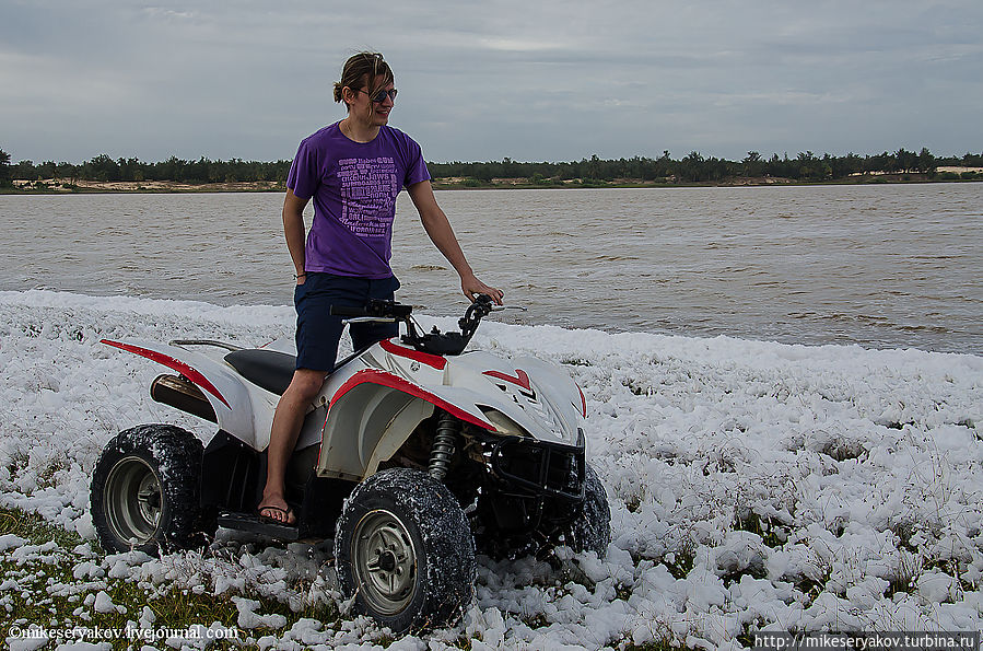 Прикольно погонять на «квадрике» по берегам озера покрытым пеной.