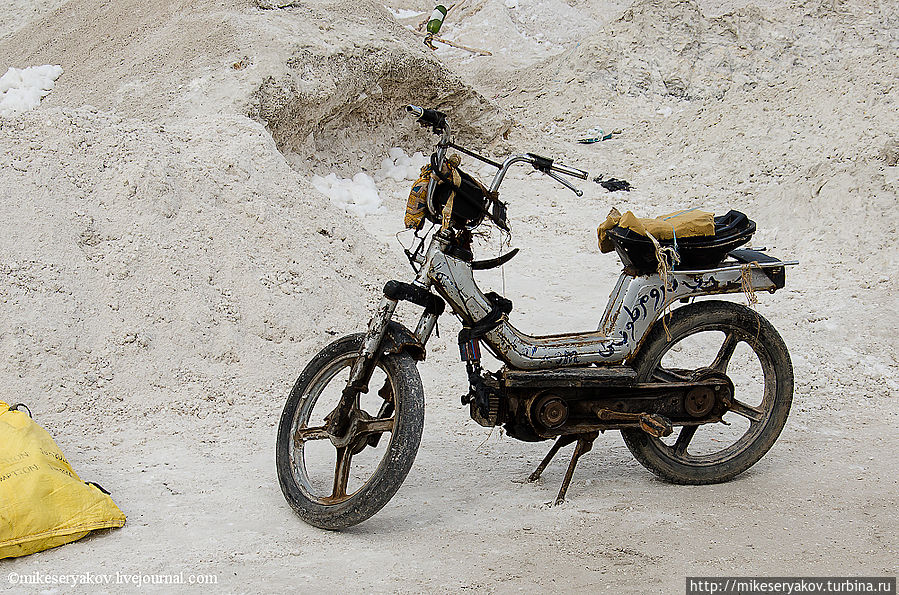 Ездят «соледобытчики» вот на таких гибридах мопеда и велосипеда, которые называются здесь мобилеты, ну а кто – позажиточнее, использует и немецкий транспорт.