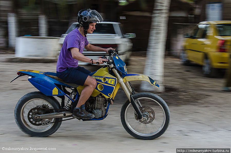 А вот, чтобы покататься на моцике, пришлось одолжить ботинки у местных товарищей, они все ездят тут на мотоциклах в шлепках и не видят в этом проблем, а я видимо "привыкший к роскоши белый", и переключать передачи голой ногой для меня было болезненной процедурой.