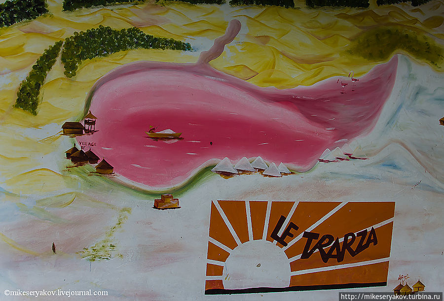 Вокруг озера расположены 7 или 8 отелей, я жил в одном из них, который называется «Trarza”. Сенегальцы украшают отель прикольными картинками, подчеркивая постоянно, что озеро всё-таки Розовое.
