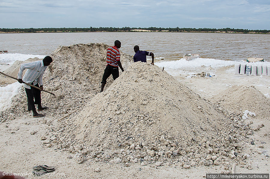 На берегах повсюду добывают соль. Делать это могут все сенегальцы, совершенно без налогов, потому что работа эта очень трудна.
