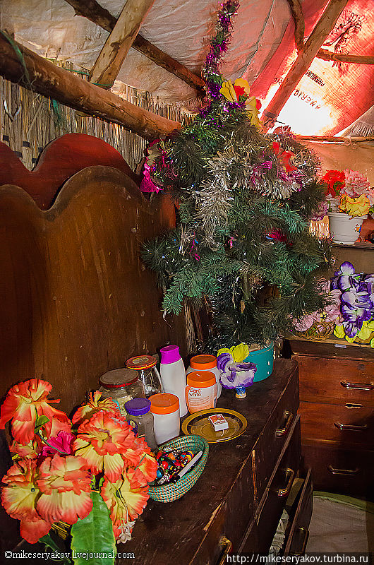 Жители деревни живут в хижинах под соломенной крышей. Один из местных «аборигенов» любезно согласился показать свое жилище.