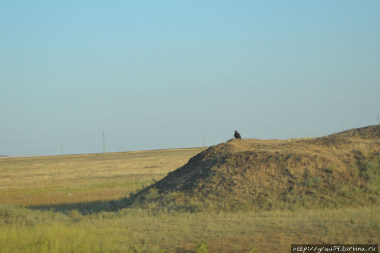 А вот коровы по старинке гуляют по степи, где на холмиках время от времени встречаются хищные степные птицы.С появлением нормальной дороги исчез шлагбаум вместе с КПП по сбору денег, хотя домишко стоит заброшенный у трассы.
