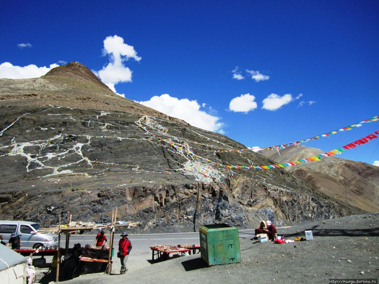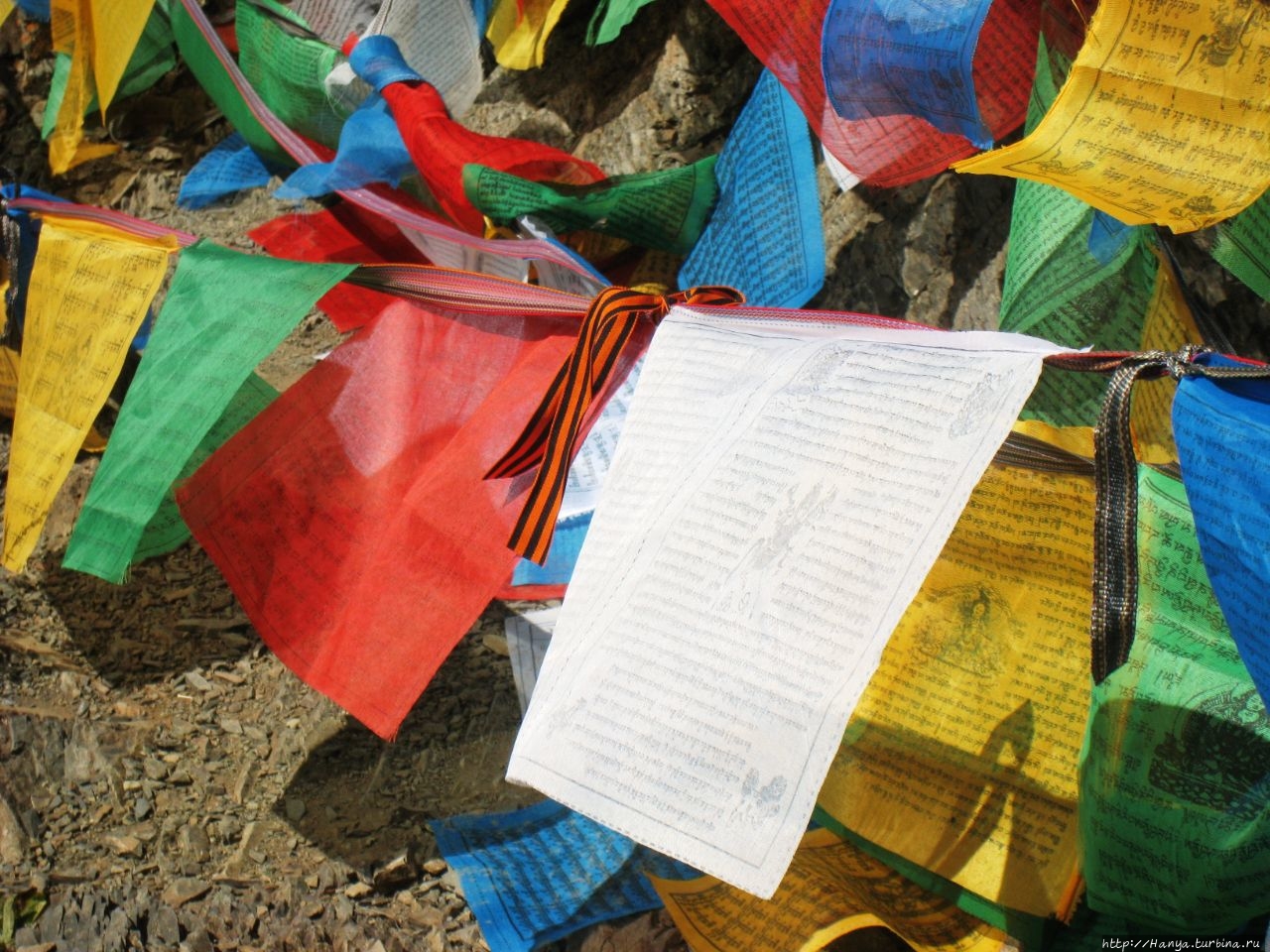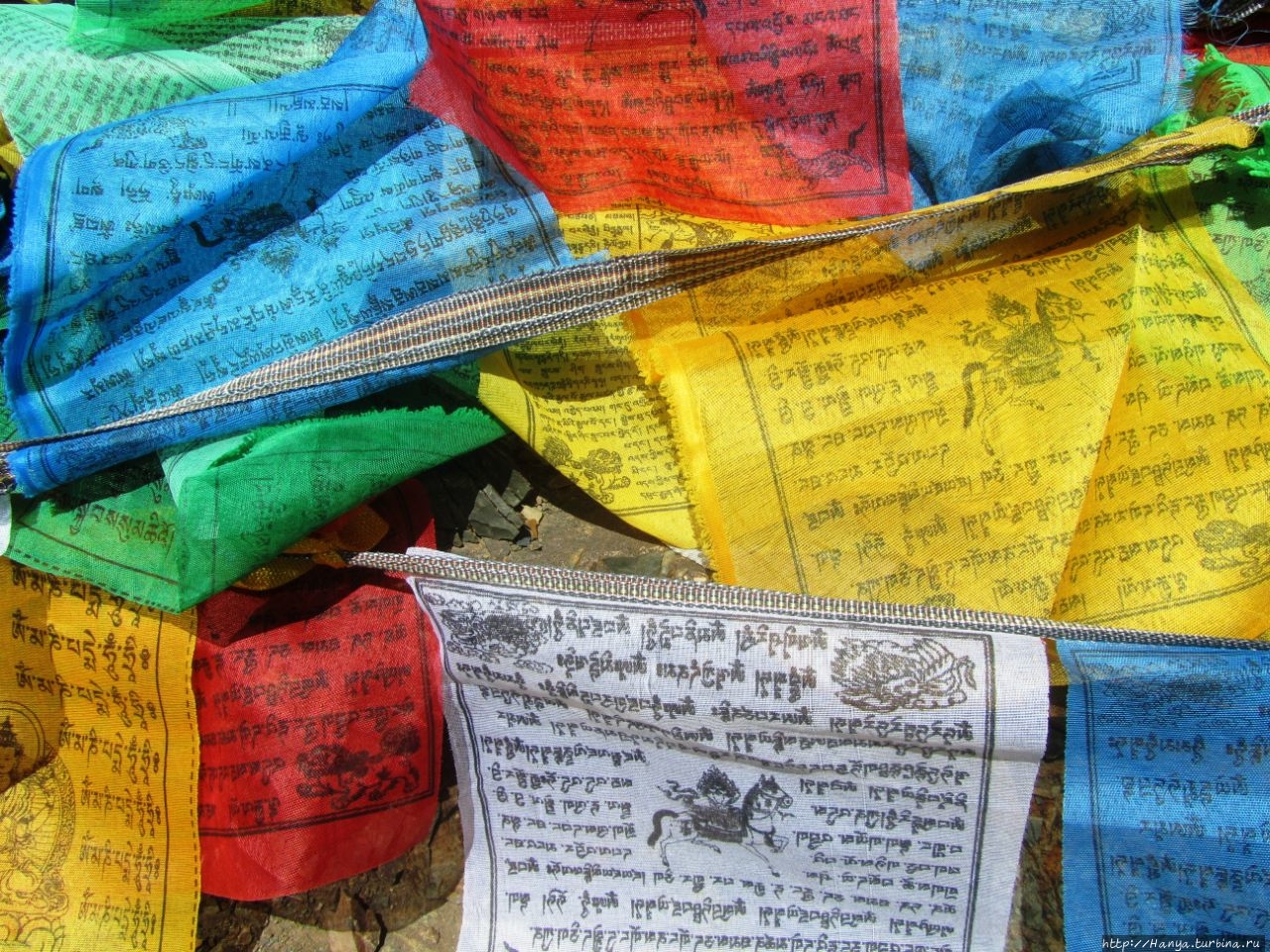 В месте, где мы остановились, много ритуальных флажков и лент, развевающихся на ветру,