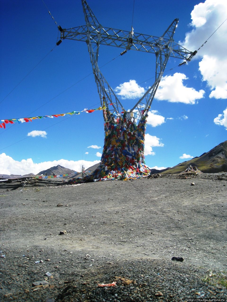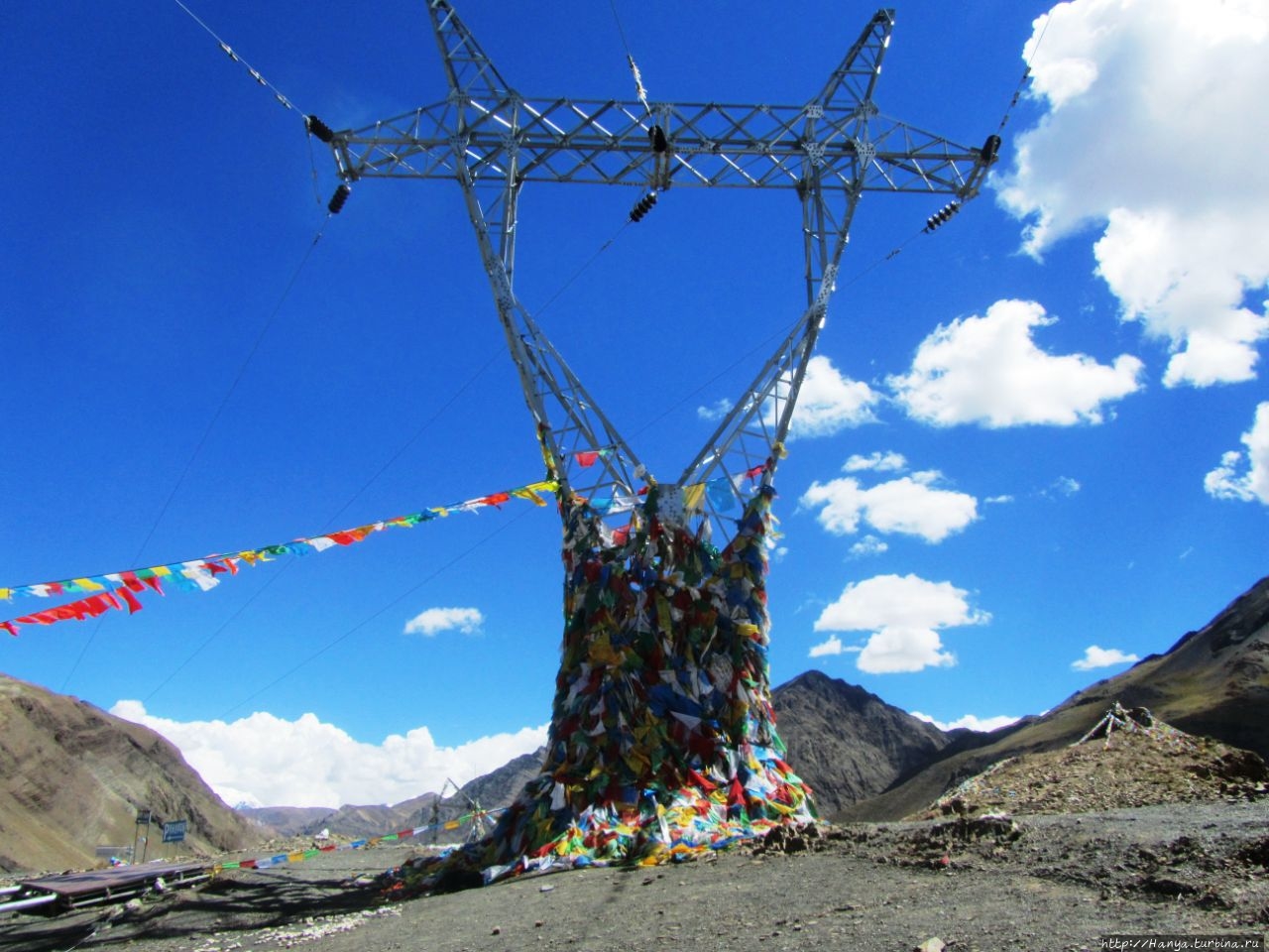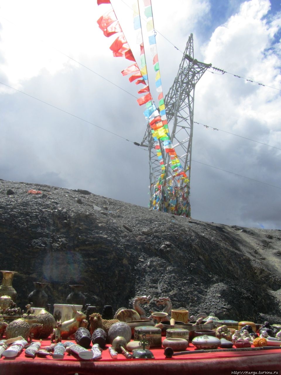 В месте, где мы остановились, много ритуальных флажков и лент, развевающихся на ветру,