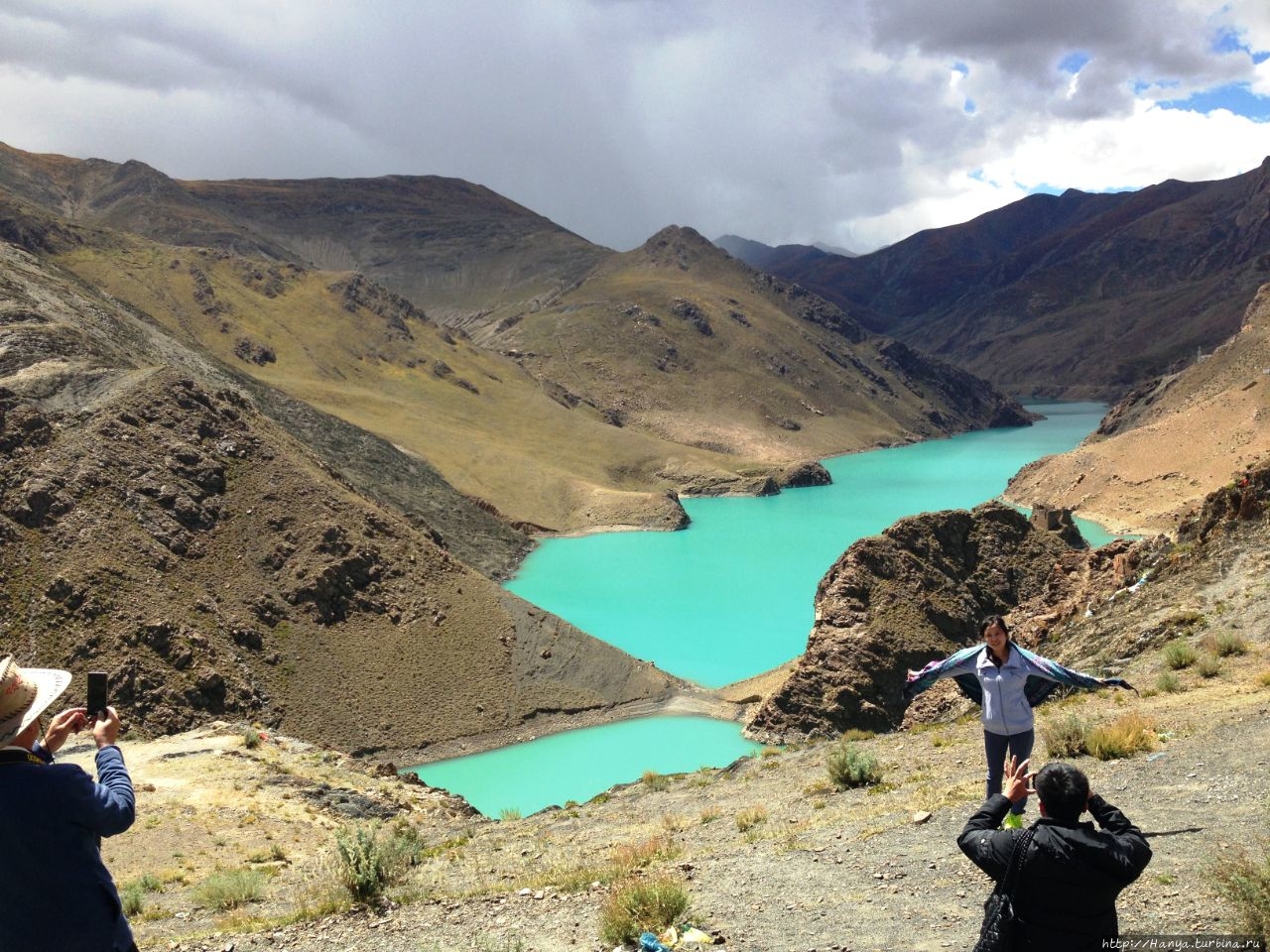 Стоя на вершине холма с удивлением замечаешь, что изменив угол обзора, ты видишь другой цвет воды, и его окрас меняется от изумрудного до голубого, насыщенного синего и бирюзового. Оказывается, Ямдрок становится бирюзовым, когда на него светит солнце. С изменением угла падения солнечных лучей озеро отражает разную степень синего, голубого и сапфирового.