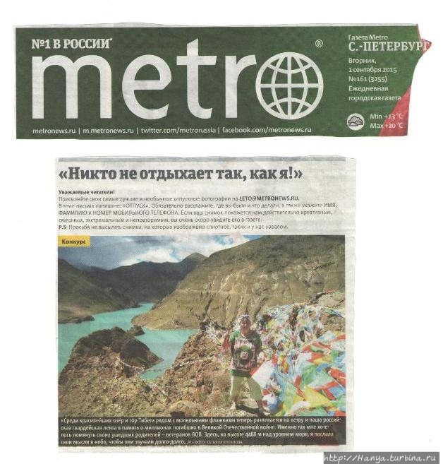 Рассказ об этом событии в моей туристической жизни я разместила в газете «Метро», приняв участие в конкурсе.