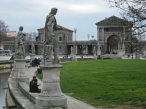 Изрядно поплутав по узким односторонним улочкам старого города в поисках парковки, поставили в навигаторе другую, и приехали прямо на Прато-делла-Валле, самую большую и, как говорят все путеводители, самую красивую площадь Италии. Да, итальянские скульпторы прошлого изрядно потрудились, чтобы доставить нам удовольствие в 21 веке — площадь полна великолепных скульптур.
