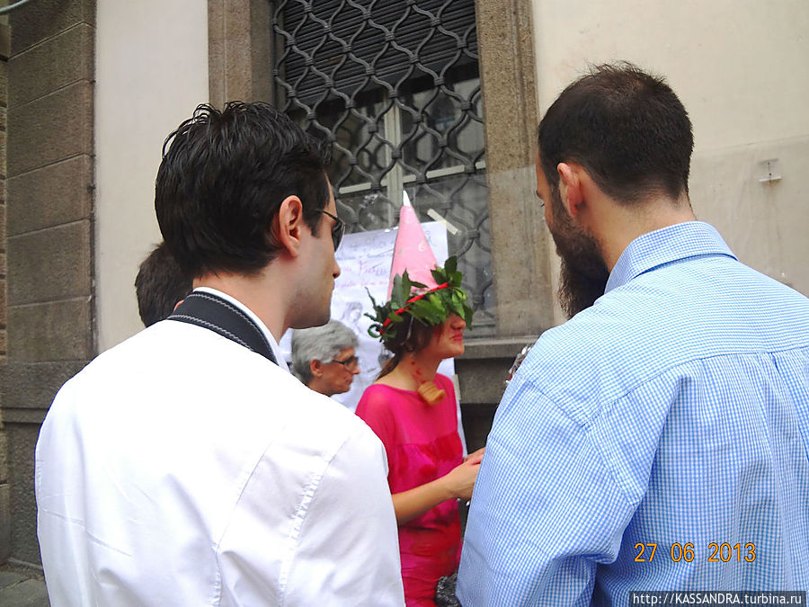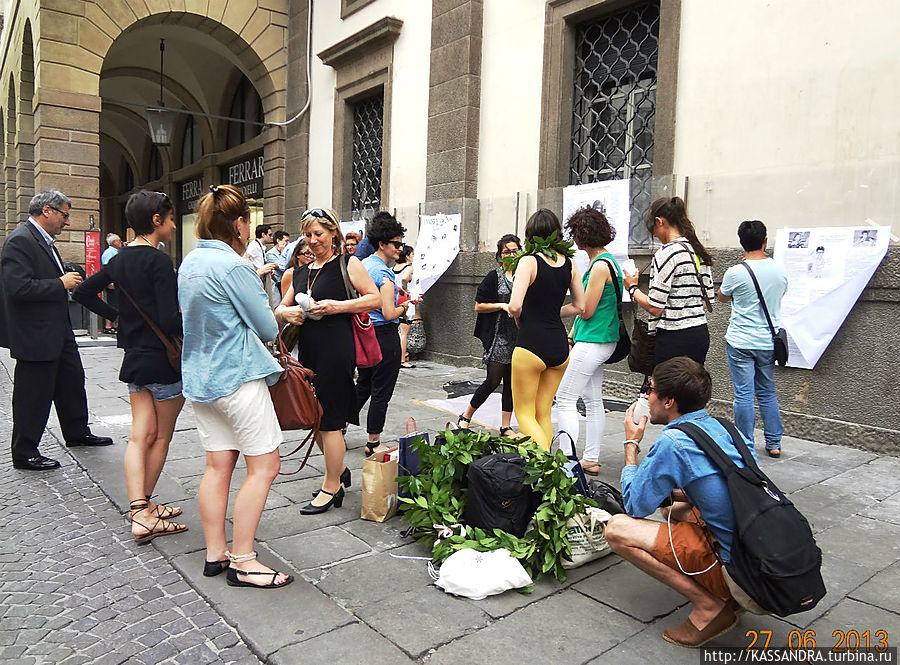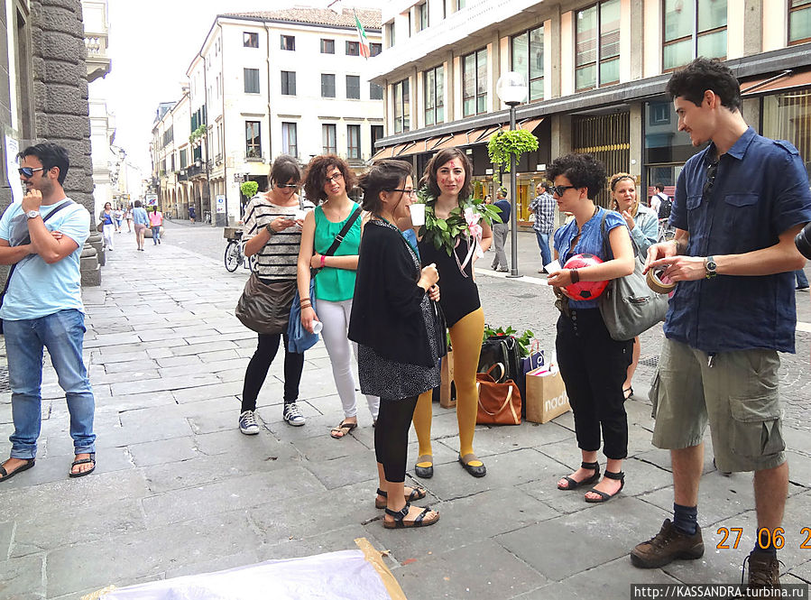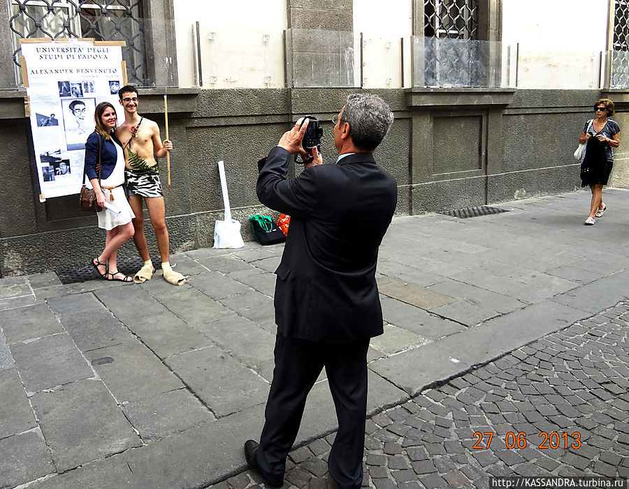 Один из старинных обрядов праздника "посвящения в студенты" проходил на наших глазах во внутреннем дворике Палаццо дель Бо.