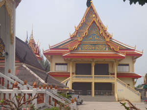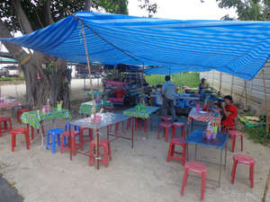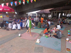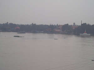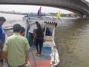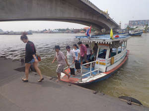 Мое первая поездка в район Паккрет. Мост Рамы 4-го, переправа через реку Чао-Прая(3р. стоит), ват Тоей на противоположном берегу, в котором как-то безлюдно, общепиты(под деревом и под мостом), старые японские автомобили