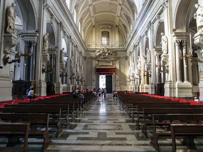 Фрески, украшающие сводчатый потолок, относятся к концу 18 века и изображают Вознесение Богородицы и освобождение храма от арабов. Они, конечно, хороши, но знание, что этим заменили в своё время резной деревянный потолок и мозаики норманнского периода, несколько обескураживает.
