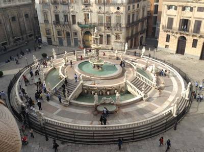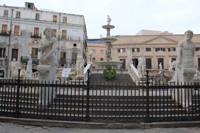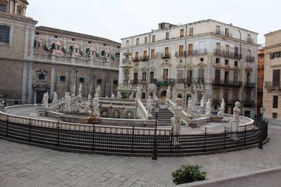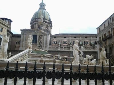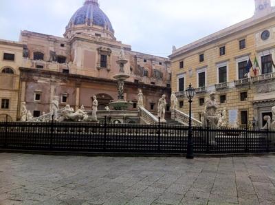 ''Piazza Pretoria'', (называемая так же ''piazza della Vergogna'') находится в историческом центре города. По середине площади расположен фонтан ''la fontana Pretoria''.Фонтан сооружён по проекту флорентийского скульптора Francesco Camilliani по заказу одного знатного синьора Don Luigi Toledo, который решил украсит свой сад фонтаном. В 1554 году во Флоренции (Firenze) скульптор Francesco Camilliani соорудил фонтан, состоящий из 48 статуй, сделанных из каррарского мрамора. После смерти Don Luigi Toledo его сын решил продать фонтан сенату города Palermo. В 1581 году фонтан был разобран на 644 части, погружен на корабли и перевезён в Palermo. Смонтирован и установлен фонтан на ''piazza Pretoria'' был Camillo Camilliani — сыном скульптора Francesco Camilliani. Статуи фонтана изображают мифологические фигуры: Venere, Adone, Ercole, Apollo, Diana, Pomona. Так же изображена аллегорическая презентация четырёх рек Palermo: l'Oreto, il Papireto, il Gabriele, il Maredolce. По сторонам площади находятся: Palazzo Pretorio, сооружённый в 14 веке. (Реконструкция ''palazzo'' была сделана в 19 веке). ''Basilica di San Giuseppe dei Teatini'', сооружённая в 17 веке. ''Palazzo Bordonaro'' и ''Palazzo Bonocore'', построенные в 16 веке. ''Chiesa di Santa Caterina'', построенная в 1596 году.
