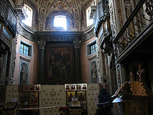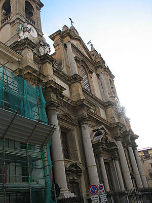 Начало прогулки напомнило нам о скором возвращении в Рим. Мы повернули налево на улицу Roma, а затем еще раз налево на улицу Valverde. На этой улице находится первый объект нашего посещения — Ораторий дель-Росарио в Санта-Сита. Первый же объект обнажил и первые трудности посещения Ораторий. Вход в них платный и стоит это удовольствие 5 евро на человека. За 1 зал пять евро показалось высокой ценой и мы успели сфотографировать только первый зал.Ораторий дель-Росарио в Санта-Сита, как и все оратории, это та же церковь только для лиц общины. Братство SS. Rosario в Санта-Cita была основана в 1570 году и являлось одной из самых богатых. Братья должны были посвятить себя благотворительности и прощения грехов через снисхождение. В те времена церковь пыталась вернуть в свое лоно с помощью искусства увлечённую просвещением и идеями Лютера паству. Скульпторы достаточно вольно обошелся с интерьером. Помимо полагающихся религиозных сцен изобразил томных дам в роскошных нарядах и бесчисленное количество putti (херувимчиков), которые дерутся, поют, веселятся и ведут себя крайне непринужденно. Здесь же можно увидеть картины скорее всего братьев этой Оратории.