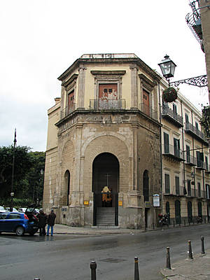 Сад Гарибальди и дворцы площади Марина По улице 4 Апреля уходим с площади и упираемся в Монастырский комплекс святой Богоматери ангелов. Строительство церкви Богоматери ангелов, называемой также Ганча, было начато в 1490 году , когда монахи получили от папы Иннокентия VIII разрешение на строительство богадельни («gancia») для больных и нуждающихся. В те времена комплекс находился за городской стеной, сейчас же он относится к центральной части Палермо. В храме можно полюбоваться органом (конец 16 века) и кропильницами (сосуды для обмакивания пушистой кисти для освещения святой водой 16 век). Огромную ценность представляет деревянный потолок (конец 16 века).