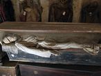 вход в катакомбыИ всё же катакомбы в виде исключения приняли ещё одну, последнюю покойницу в 20-х годах прошлого века — маленькую девочку Розалию, тело которой предварительно забальзамировали особой смесью спирта и глицерина. За 100 лет она даже не высохла и похожа на порцелановую куклу в стеклянном гробу. Недоверие к тому, что труп может так сохраниться, заставило современных учёных пойти на проверку и просветить "куклу" рентгеновскими лучами. Сомнений не осталось — в гробу не подделка, а именно тело девочки со всеми внутренними органами, которые тоже не разложились.