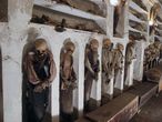 Лет 6 или 7 назад я прочла статью об удивительном монастыре Капуцинов, появившемся в Палермо примерно в 16 веке. Монахи не хотели хоронить своих усопших братьев на общем кладбище, и стаскивали тела в подвал монастыря. Под землёй они сделали что-то вроде большого общего склепа, устраивая тела на полках вдоль стен.