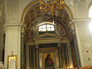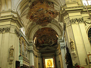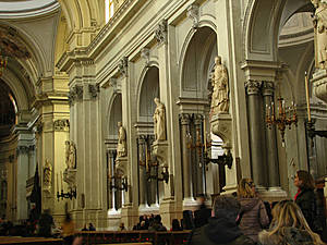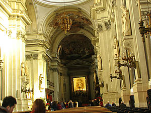 Продолжим осмотр , войдя в собор. Главный неф собора приобрел нынешний вид в 1801 году. Над главным алтарем можно увидеть две фрески конца XVIII века, изображающими Вознесение Богородицы и освобождение храма от арабов Робертом Гвискаром и Рожером I.