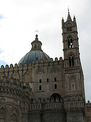 После блужданий по узким улочкам Палермо, мы вышли к Кафедральному Собору. Не побоюсь ошибиться, самому посещаемому туристическому месту. Здесь есть на что посмотреть. Особенно впечатляет смешение стилей, которое здесь имеет место быть, так как этот собор был не только церковью, но и в свое время успел побывать мечетью.
