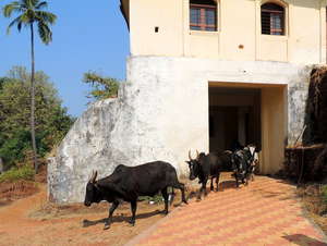 Сейчас, в середине января, в отсутствие дождей, вся трава пожелтела и высохла. Но, несмотря на это на территорию крепости местные жители загоняют свой скот как на пастбище. И эти коровы сейчас безраздельно владеют всей крепостью.