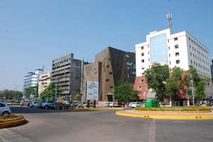 посмотреть на здание суда и потных судей в мантиях, а еще полюбоваться видом на город.А это современный район со своими высотками и непонятными памятниками.