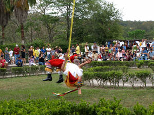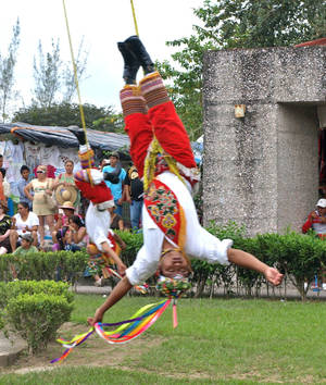 Этот танец в 15 веке начался с индейцев уастека (huasteca) и распространился по территории Мексики и северной Латинской Америки до Никарагуа. Танец выполняют 5 человек, которые символизируют 4 стороны света и переход земли на небо. Собственно танец акробатов, предшествующий акробатическому номеру, выполняется аналогично церемониальному танцу стариков, отличие в том, что он выполняется вокруг 30 метрового шеста.