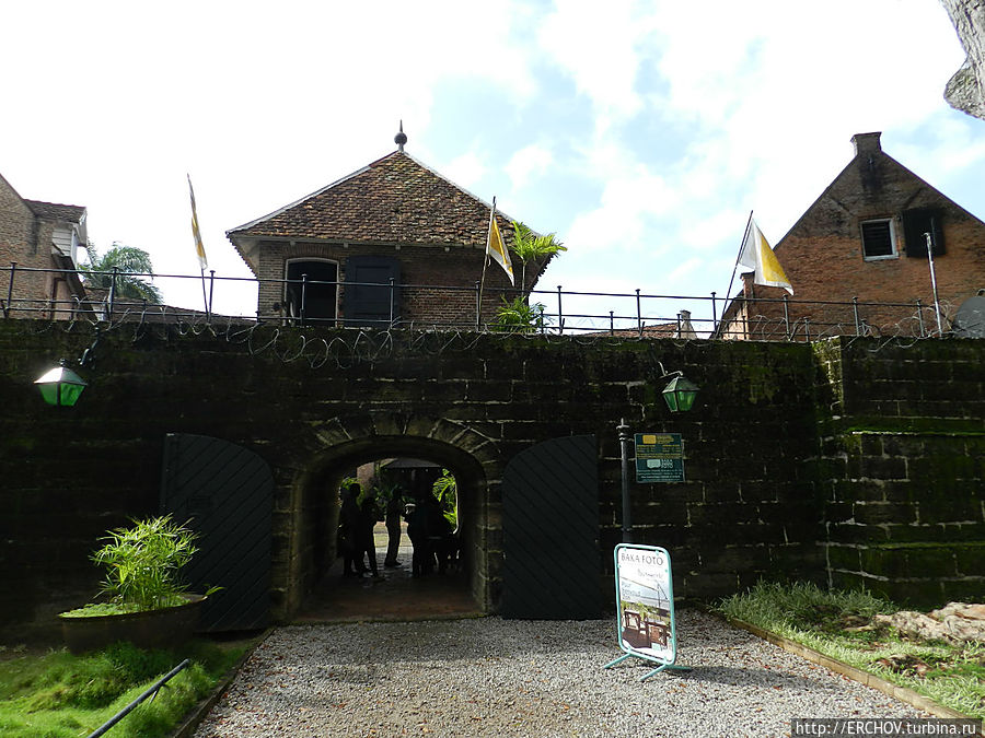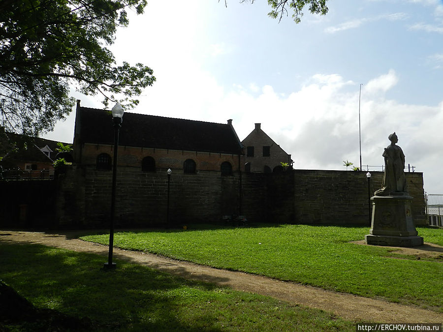 Старый форт Зеландия восстановлен. Перед его главной стеной установлен памятник голландской королеве. В сам форт гид нас почему-то не повёл, и мы направились дальше в город.