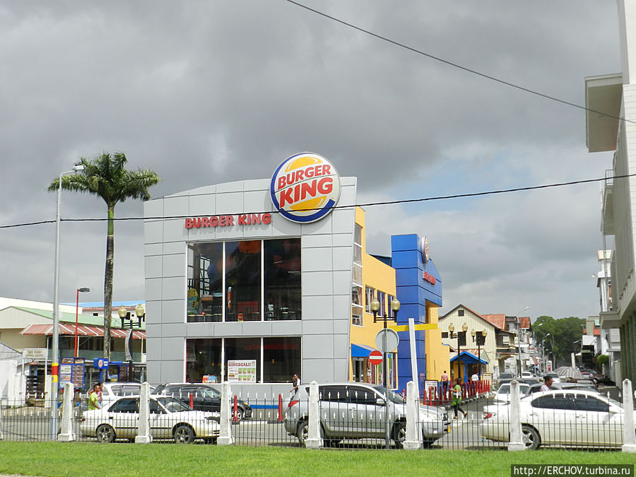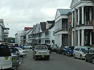 Парамарибо на порядок богаче Джорджтауна. Машин в Парамарибо больше и они более дорогие. Много и автосалонов, где продаются престижные авто. Движение в городе скоростным назвать нельзя, московской суеты на дорогах нет, но как-то нет и водителей интеллигентов, никто никого особо не пропускает.